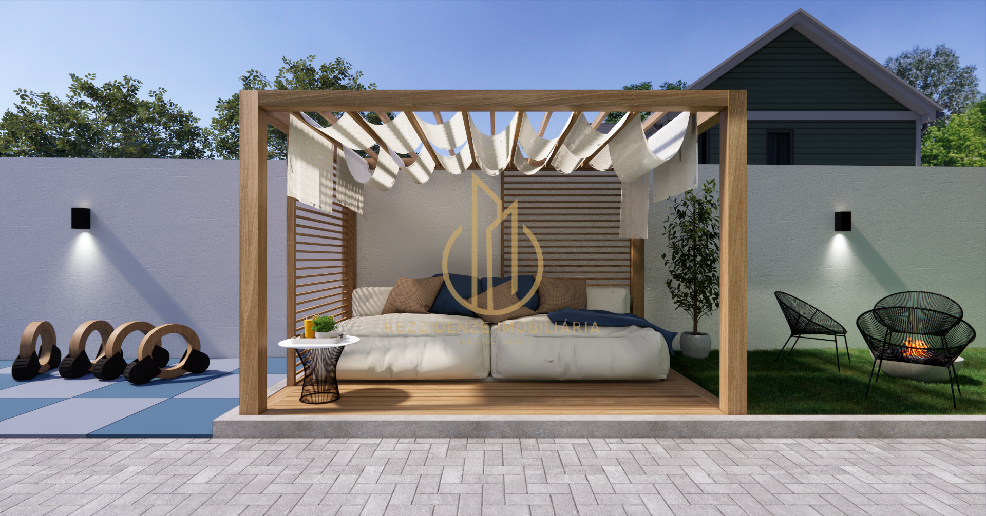 Lazer e Convivência: Piscina com deck de madeira, Salão de Festas com churrasqueira a carvão e Playground.