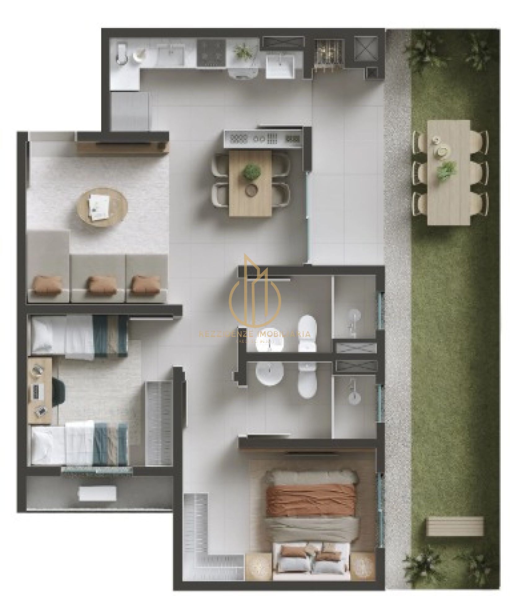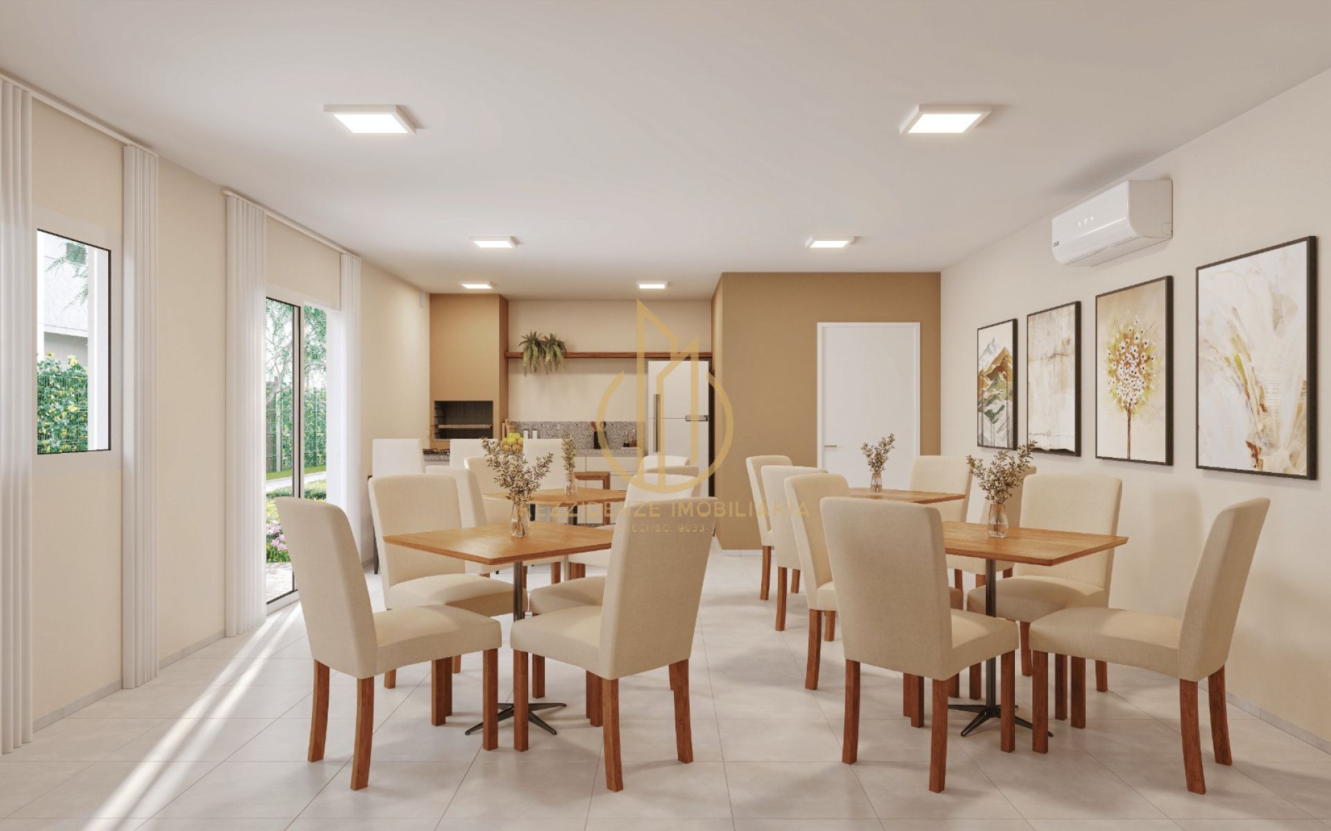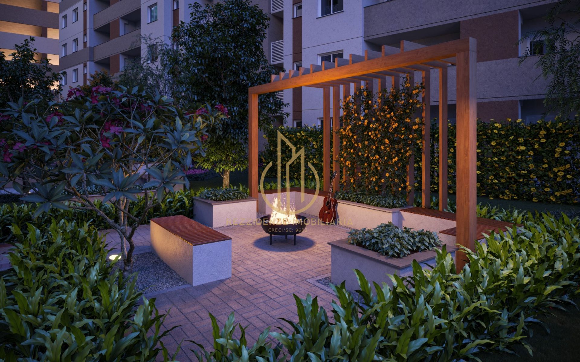 Os apartamentos contam com suíte, opções de 2 ou 3 dormitórios, sacada com churrasqueira e unidades giardino, com plantas bem planejadas para diferentes estilos de vida. O condomínio fechado oferece segurança e diversas áreas de lazer, como brinquedoteca, piscinas adulto e infantil, playground, beach tennis, espaço pet, praça do fogo e redário.