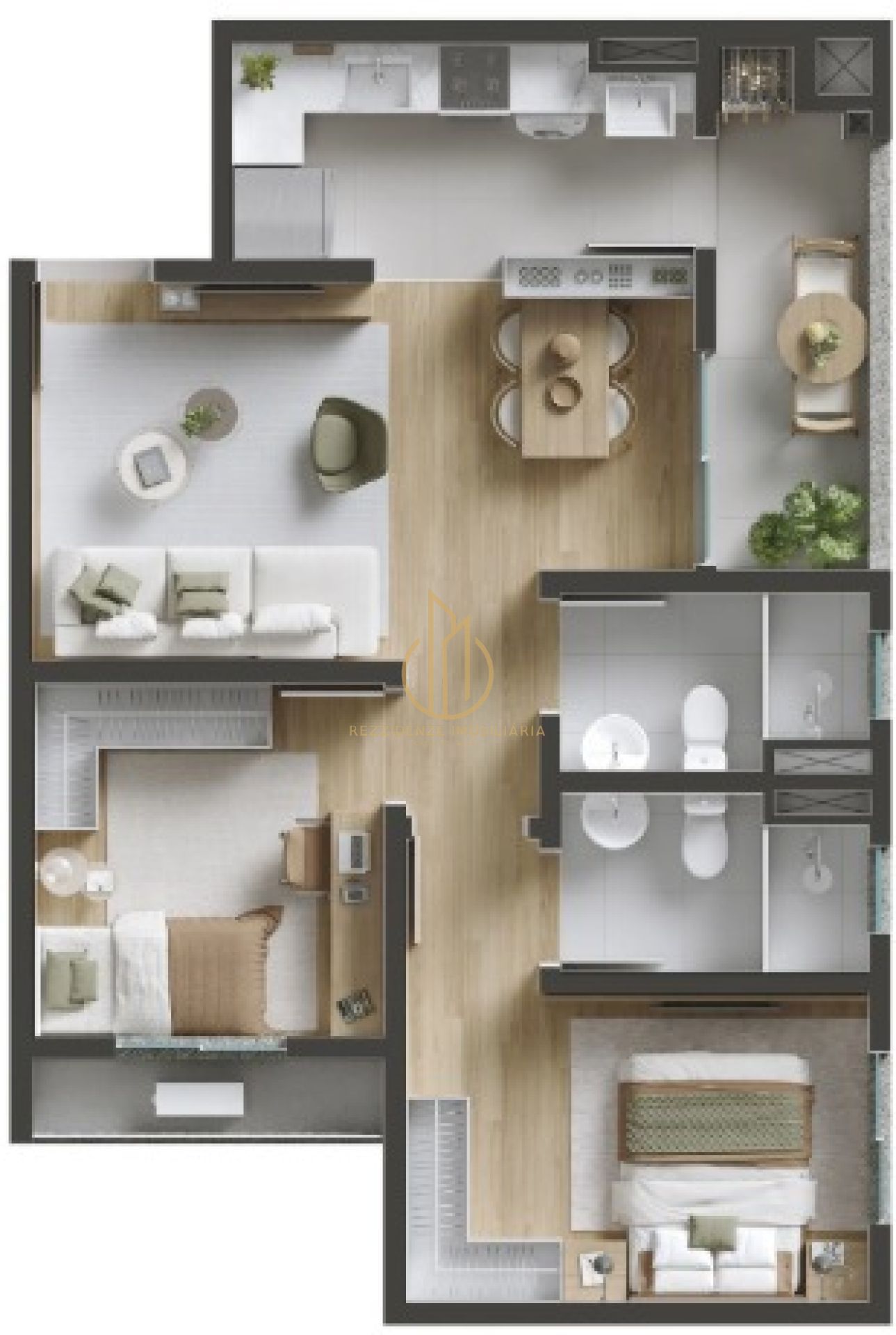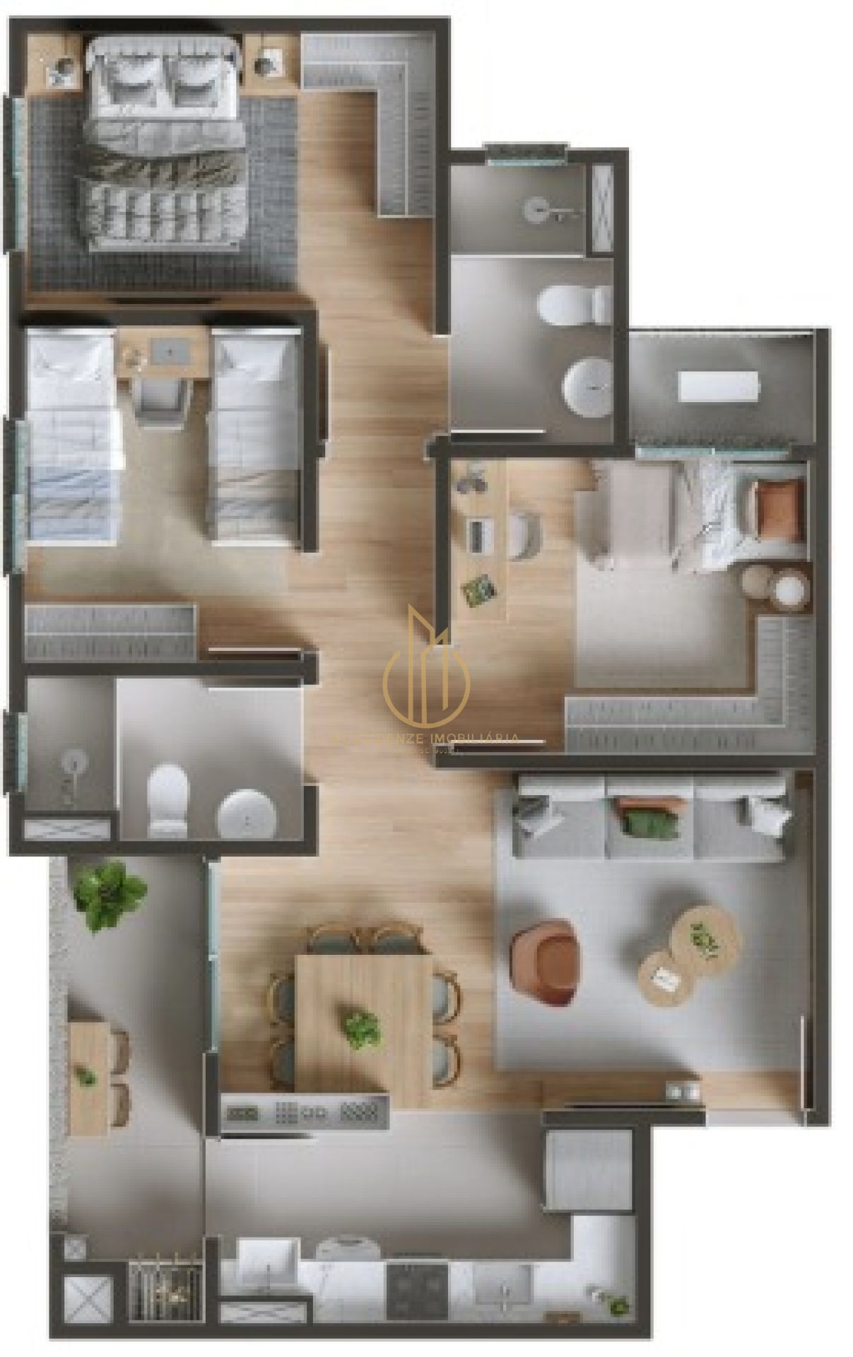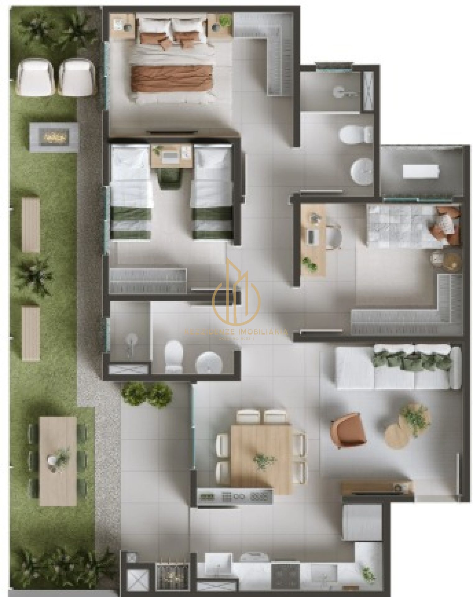 Os apartamentos contam com suíte, opções de 2 ou 3 dormitórios, sacada com churrasqueira e unidades giardino, com plantas bem planejadas para diferentes estilos de vida. O condomínio fechado oferece segurança e diversas áreas de lazer, como brinquedoteca, piscinas adulto e infantil, playground, beach tennis, espaço pet, praça do fogo e redário.