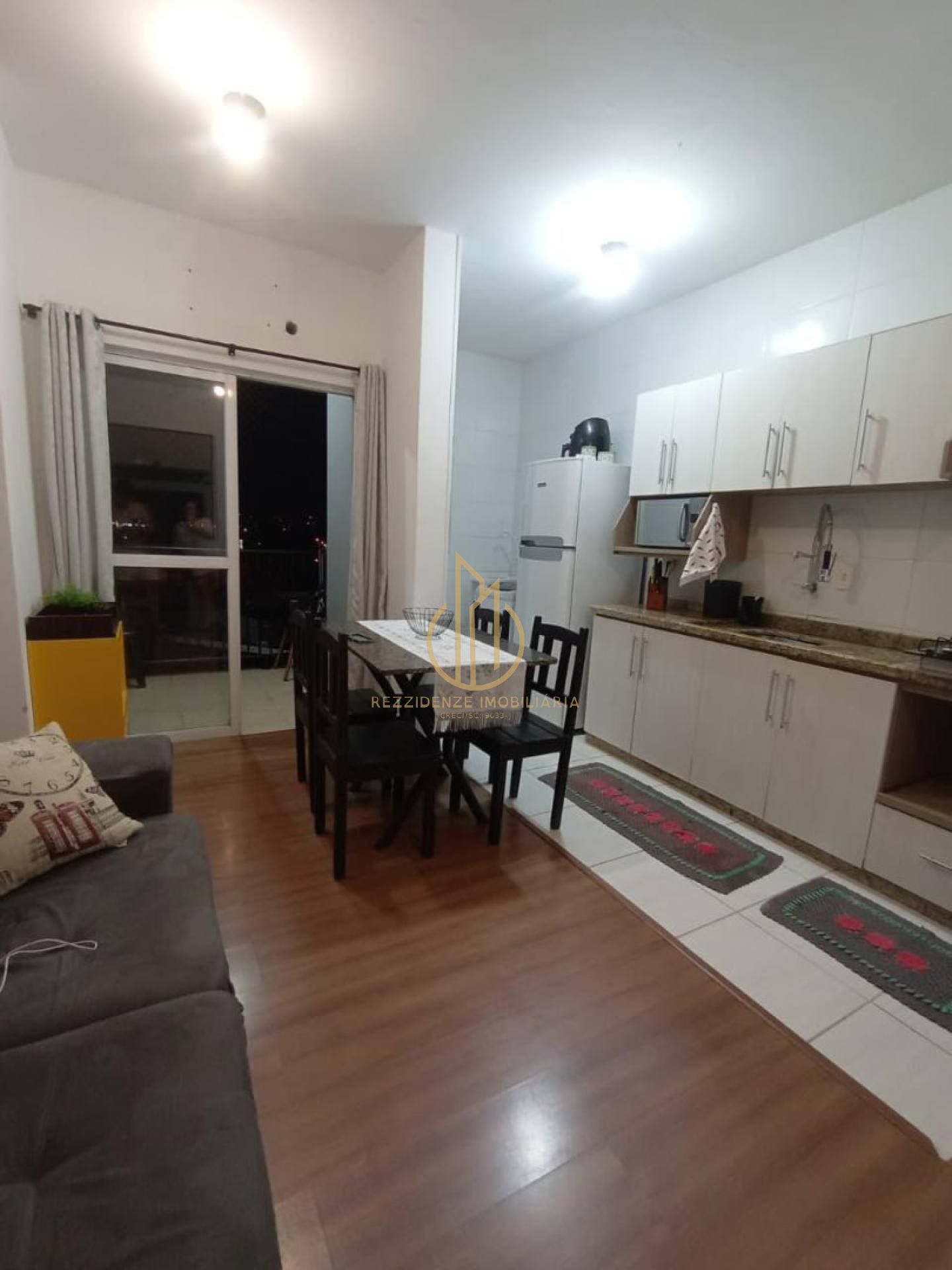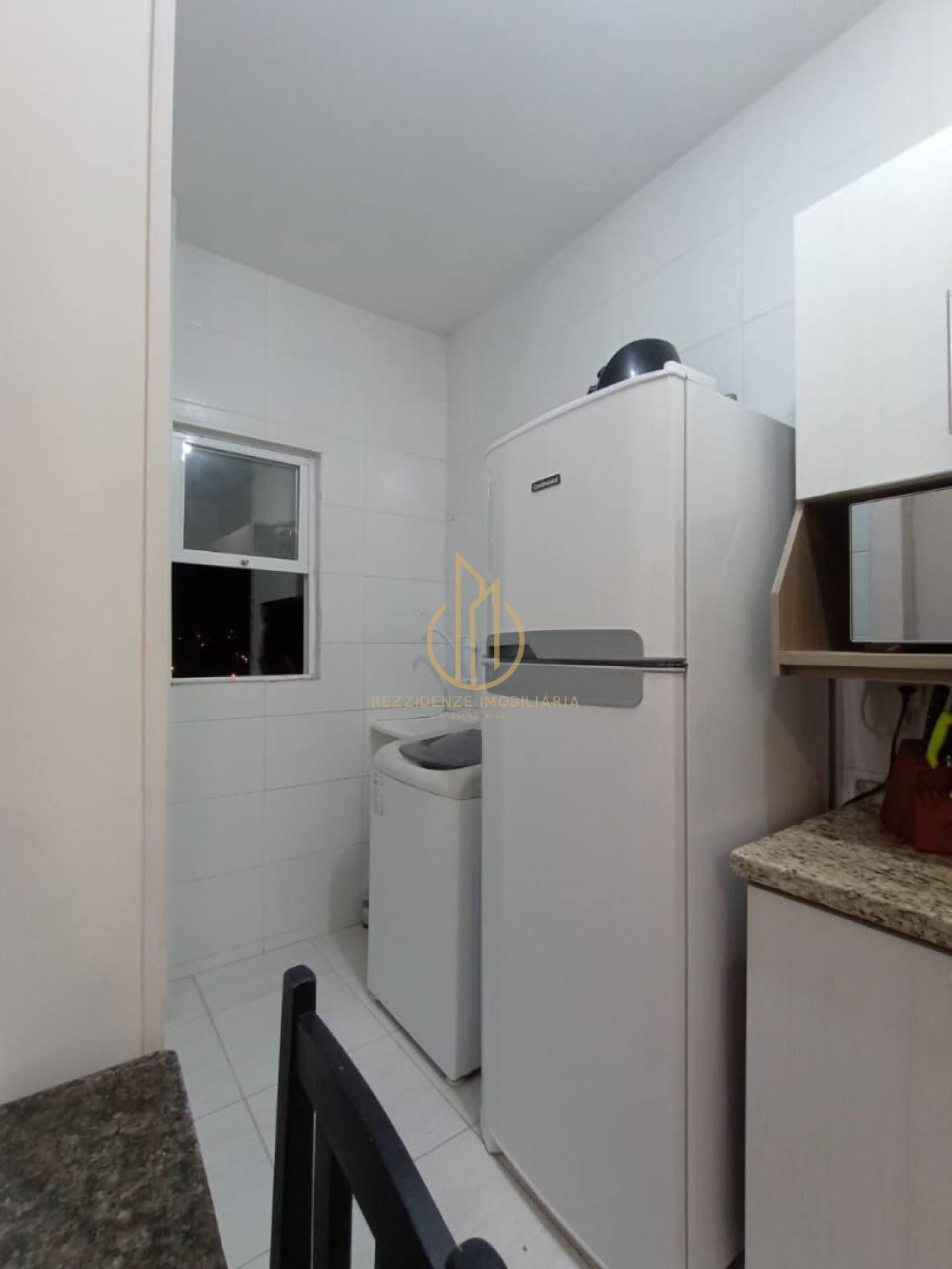 Ambientes: Living integrado (Sala e Cozinha) e área de serviço.