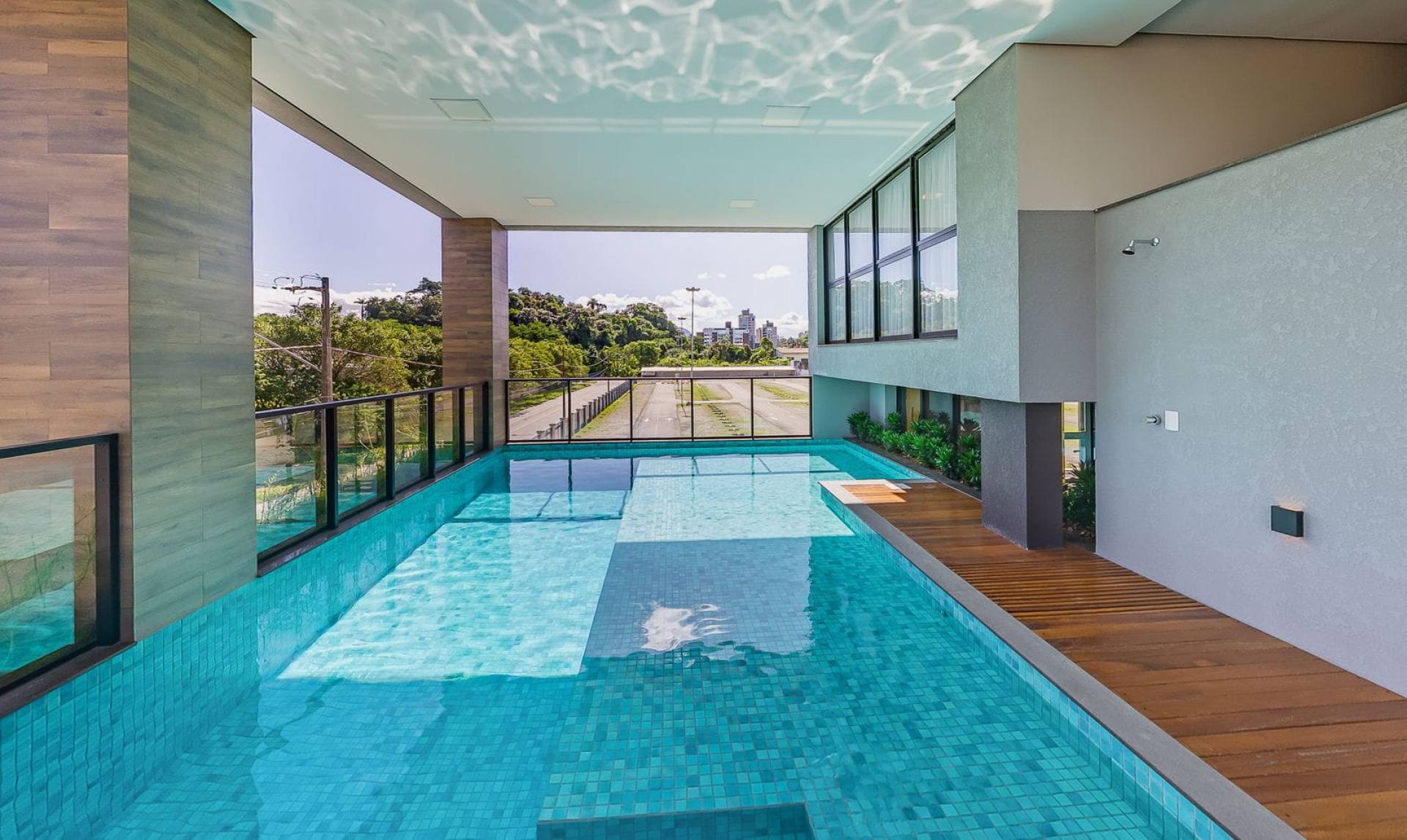 Piscina-raia aquecida e coberta com 14 metros de comprimento