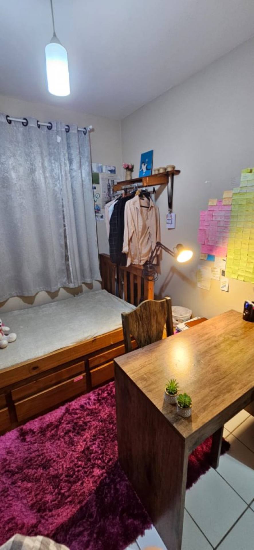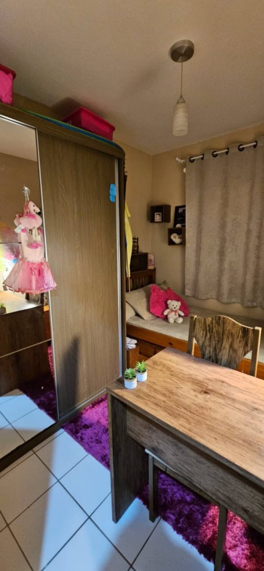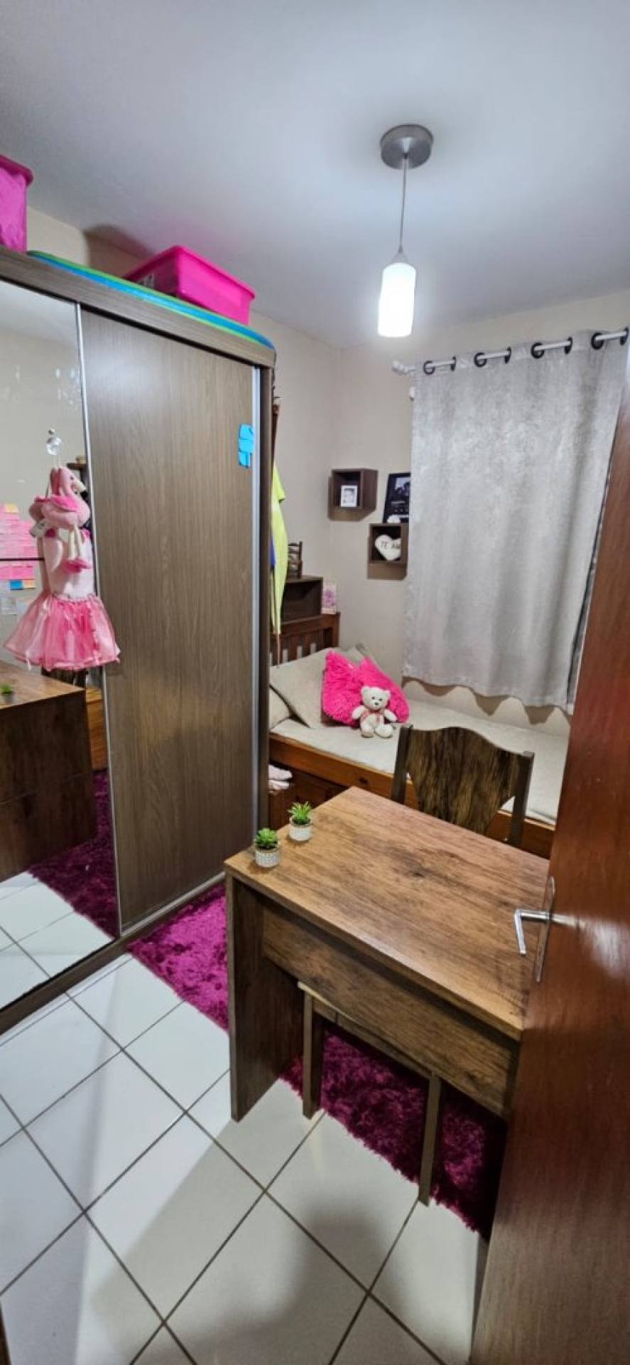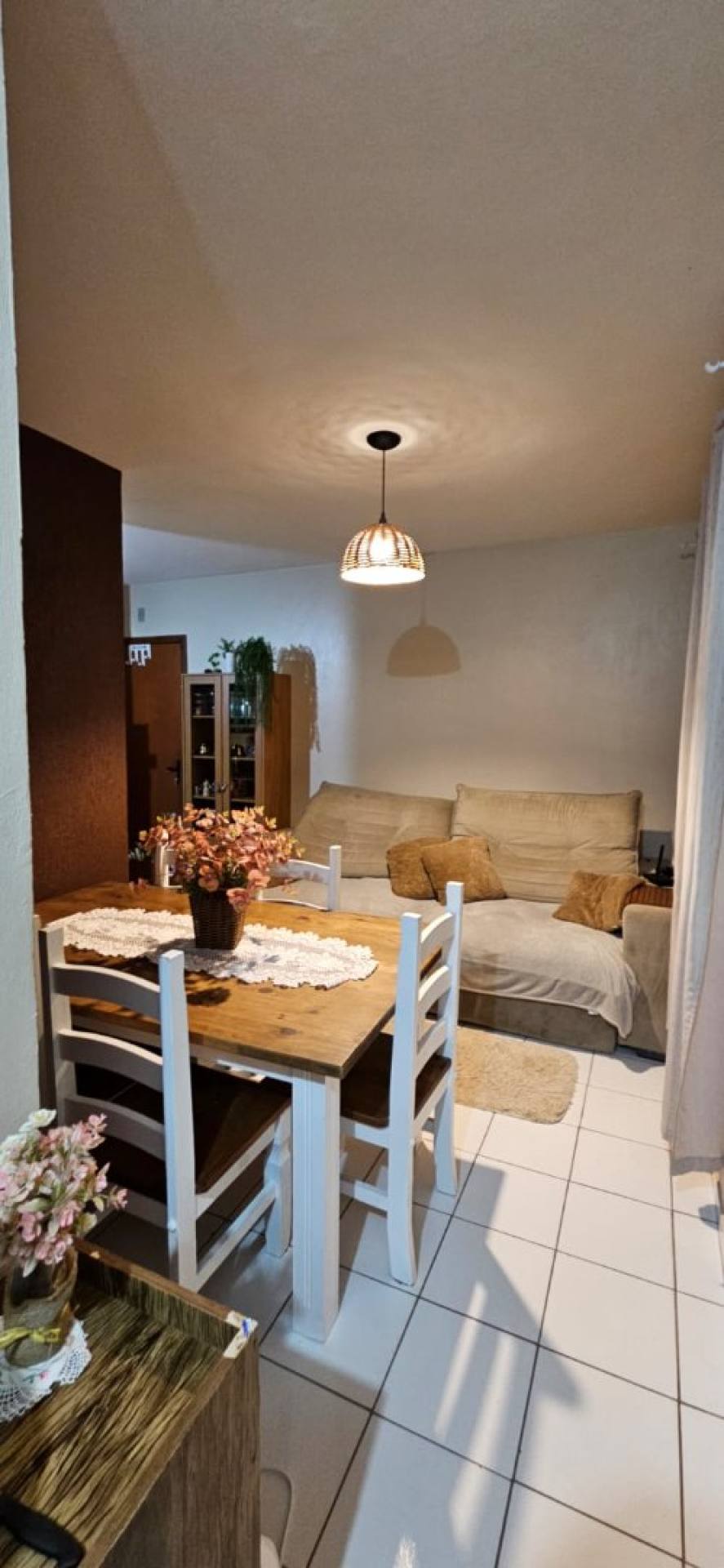 O imóvel conta com 3 dormitórios bem distribuídos, oferecendo espaço para família ou para quem precisa de um quarto extra para escritório. A sala de estar é acolhedora e integrada, proporcionando um ambiente perfeito para relaxar ou receber visitas.