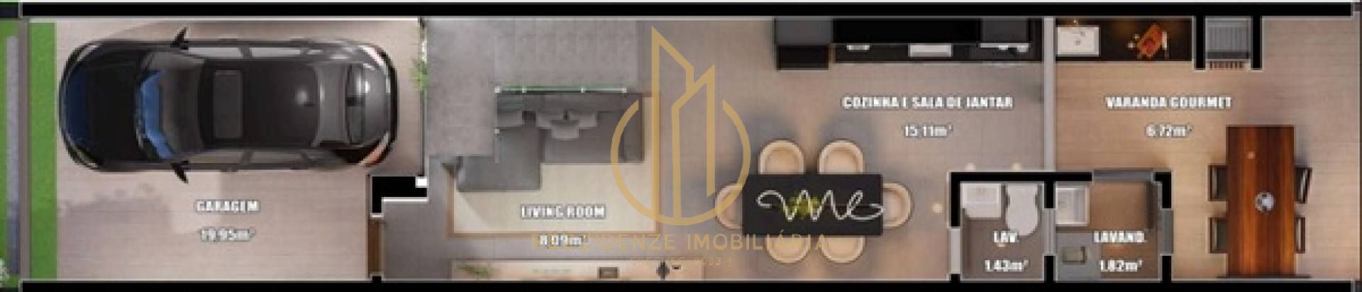 Sala de estar/jantar integrada à cozinha